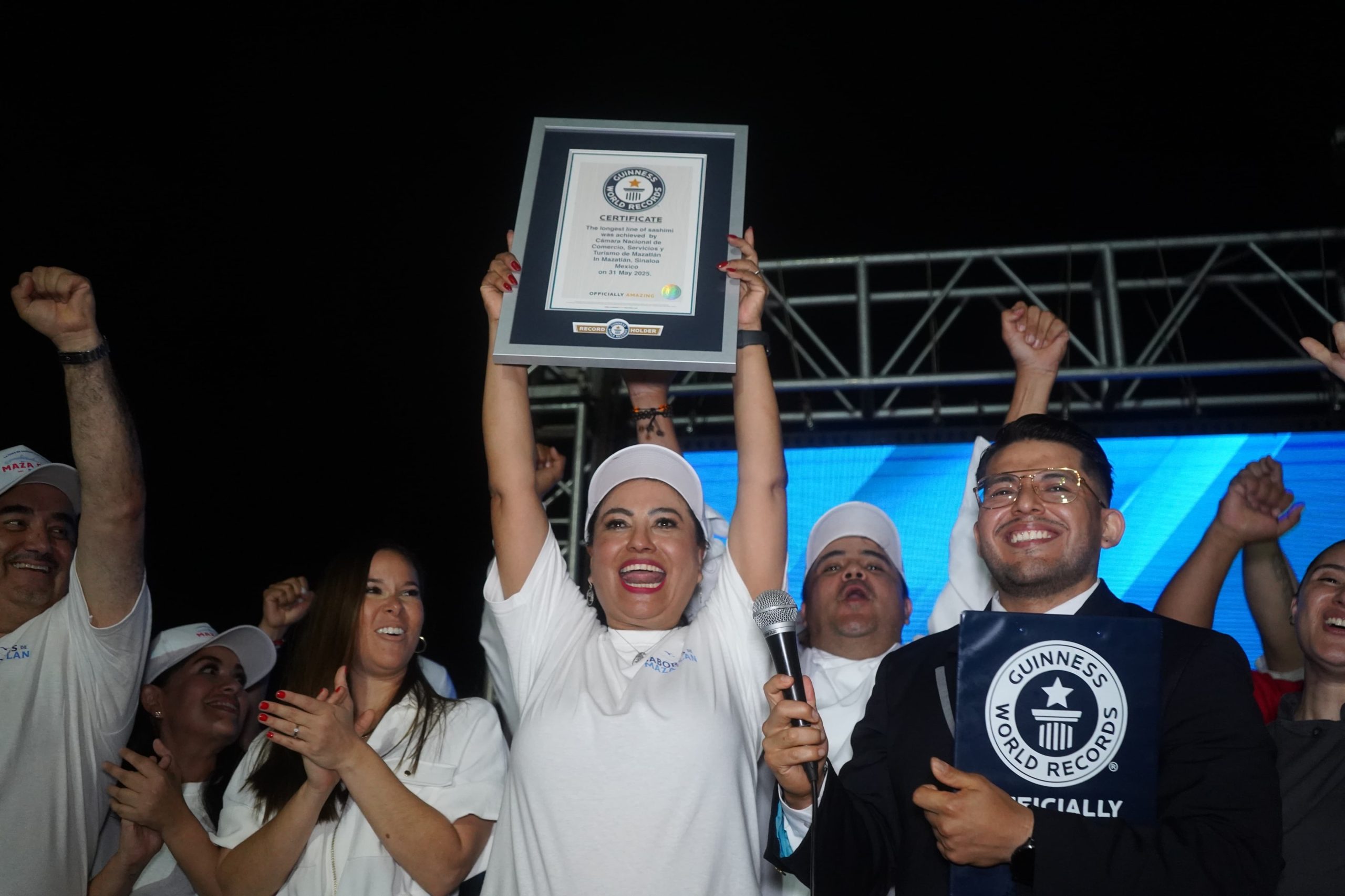 La Presidenta de la Cámara de Comercio, Servicios y Turismo de Mazatlán, LCP Francisca Cázarez Oliveros, fue quien recibió el certificado oficial. Por todo el esfuerzo realizado, agradeció a las cientas de personas que hicieron realidad este récord, el cual aseguró que dará proyección a Mazatlán y lo colocará ante los ojos del mundo.